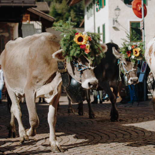 Con i primi freddi le mandrie – bovine da latte, manze, vitelli e cavalli – ritornano in paese nelle stalle dei rispettivi proprietari. Per loro è finito il lungo periodo dell’alpeggio trascorso nelle malghe di alta quota, tra pascoli ricchi di erbe aromatiche.
